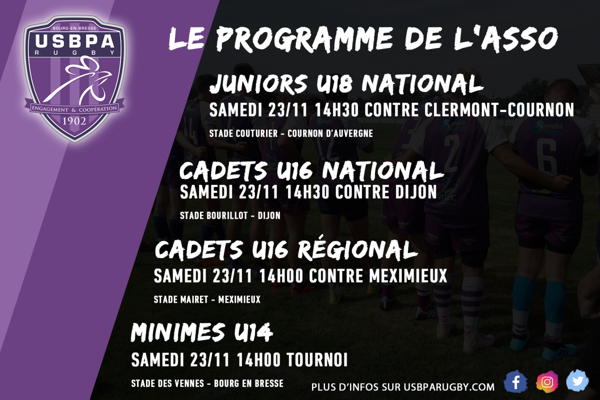 National U16 : Match samedi 23 novembre 2019 à 14h30 contre le stade Dijon Côte D’or au stade Bourillot 21000 Dijon.