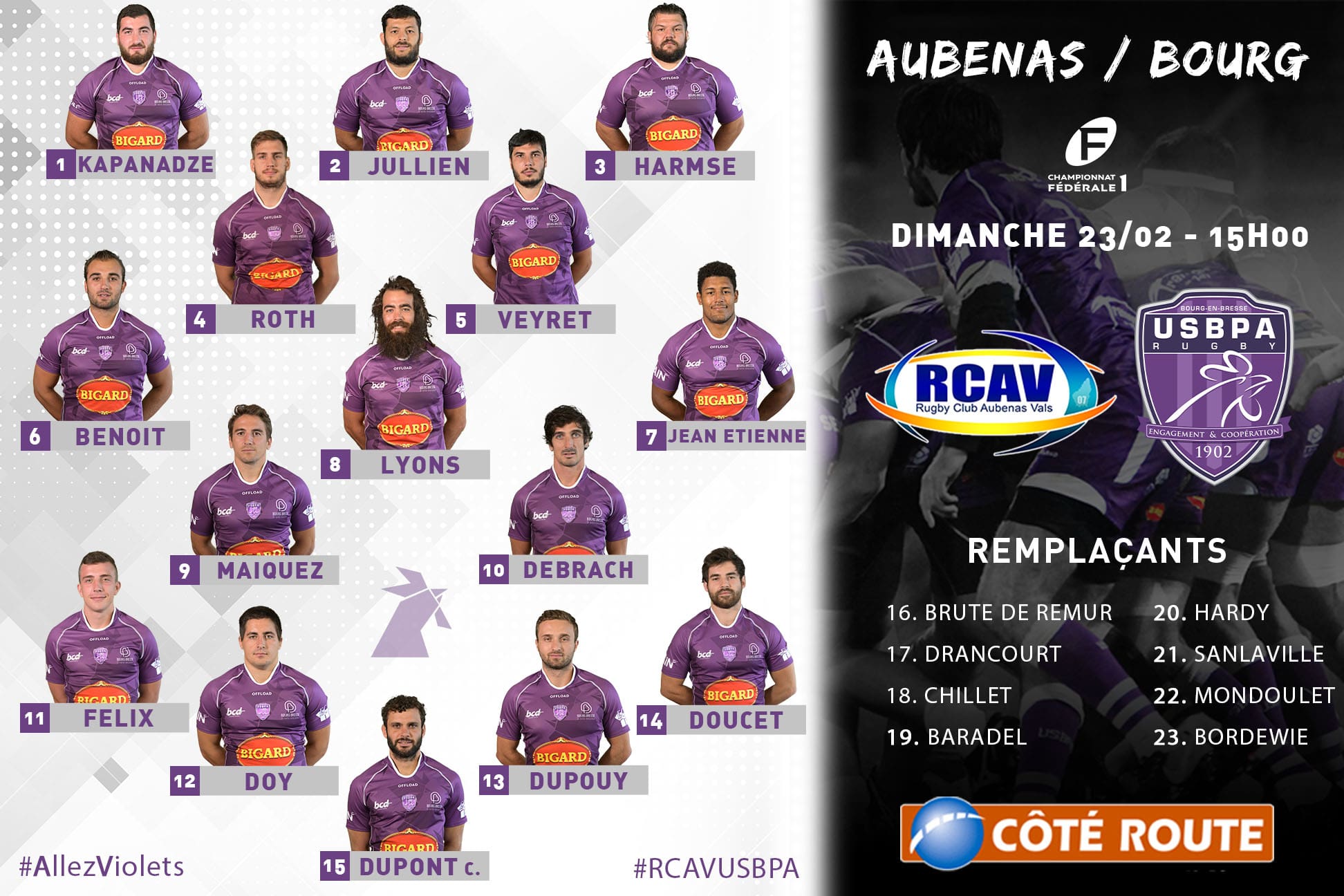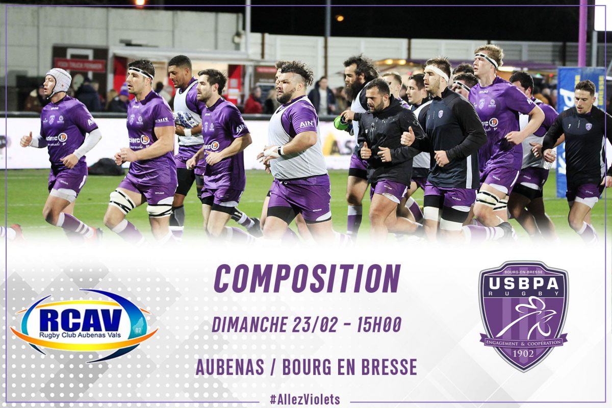 Découvrez la compo de l’USBPA qui s’en ira affronter Aubenas demain à 15h00 ! Pour rappel, le RCAV pointe à la deuxième place de cette poule 2 de Fédérale 1.