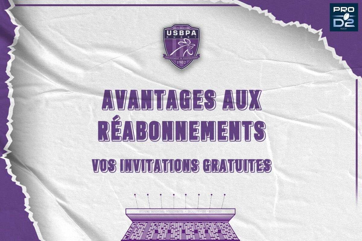 Comme nous vous l’avions annoncé en amont de la campagne d’abonnements, les personnes qui ont fait le choix de se réabonner pour cette saison de Pro D2 disposent de 4 invitations à répartir sur les matchs suivants (nous étendons cet avantage jusqu’aux matchs de janvier, hors gala) :
