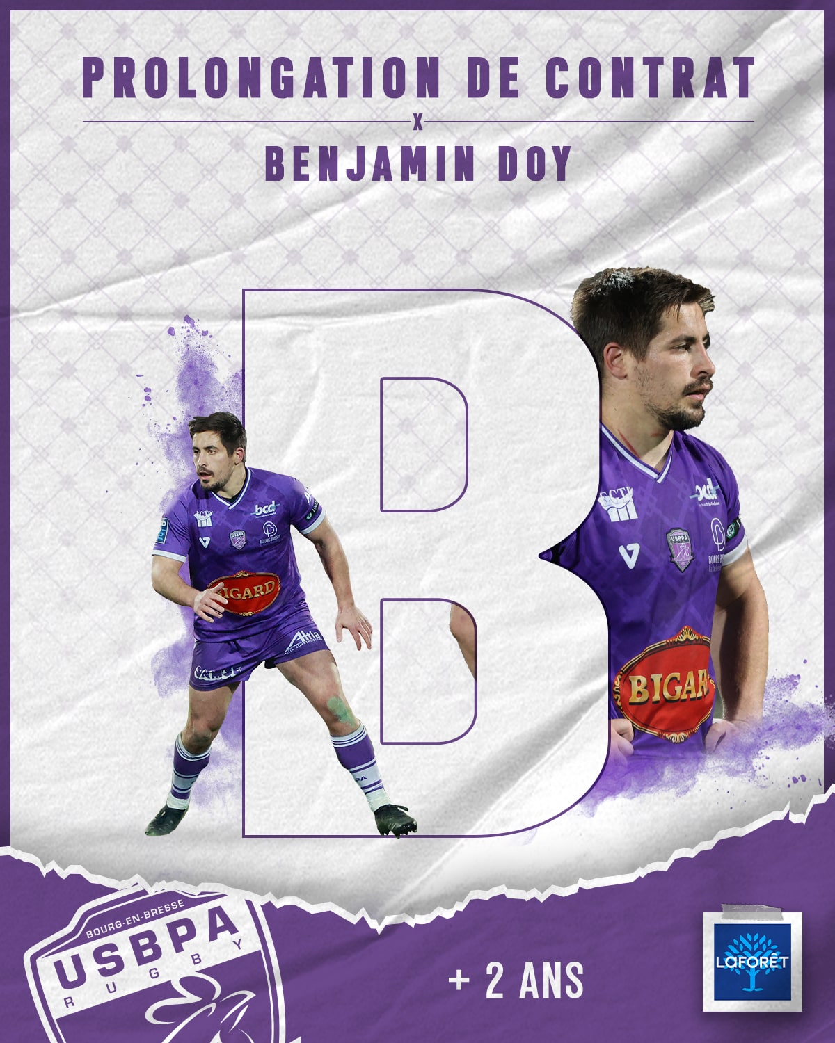 Notre partenaire Laforêt Bourg en Bresse vous informe que Benjamin Doy prolonge avec les Violets pour deux saisons supplémentaires (Centre – 28 ans – JIFF) !