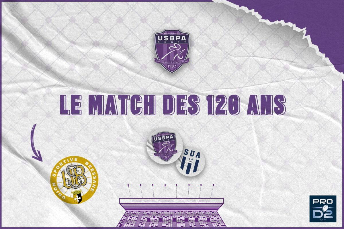 En 2022, l’Union Sportive Bressane Pays de l’Ain fête ses 120 ans d’existence ! A l’occasion de la 21ème journée de PRO D2, le club organise « le match des 120 ans » face à Agen, équipe mythique du rugby français. Nous vous donnons rendez-vous le vendredi 18 février à 19h30 pour prendre part à cette grande fête avec plein de surprises, dont une qui sollicitera la tribune CGT toute entière ! La billetterie est déjà ouverte !
