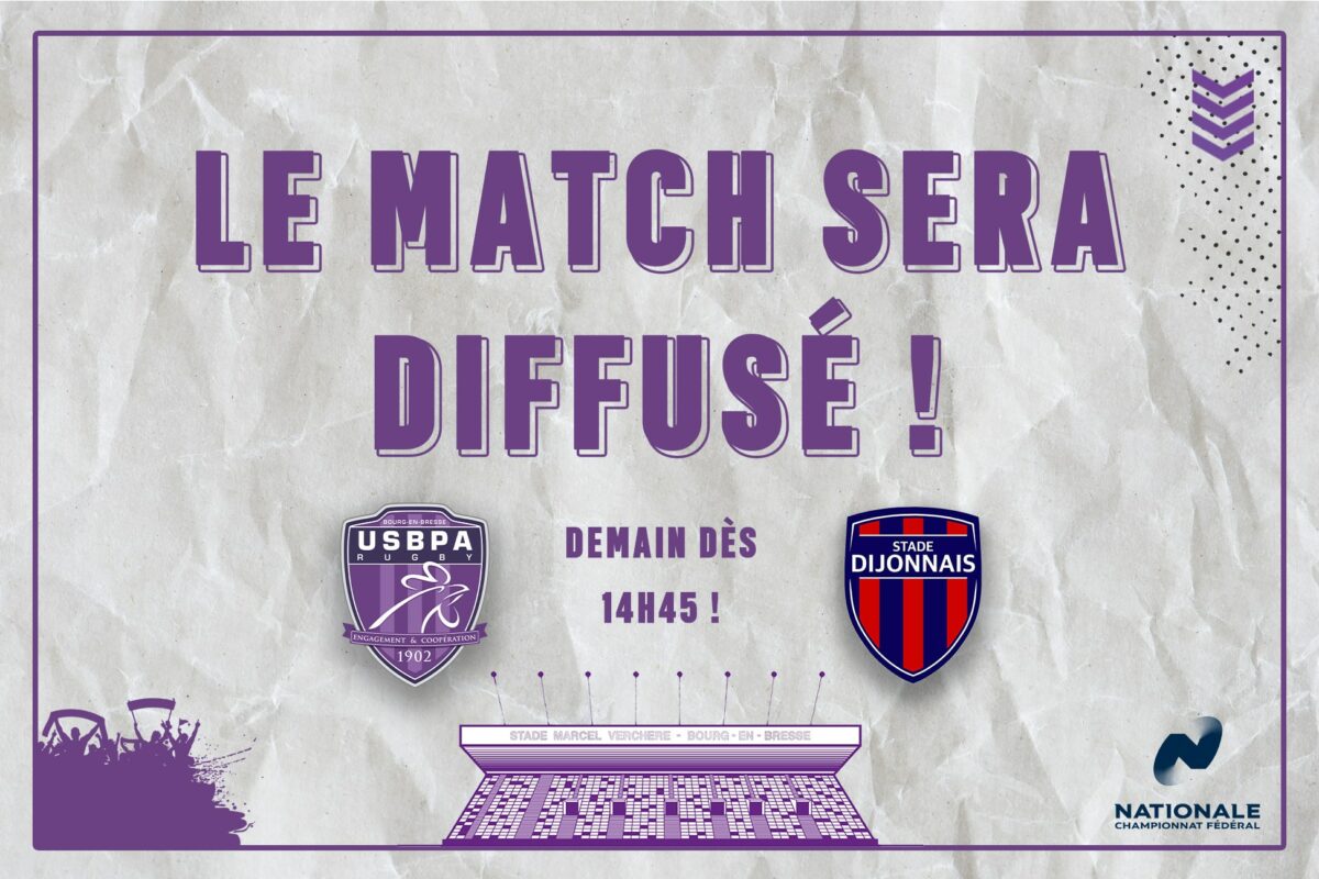 Le club a pleinement conscience que la diffusion Facebook freine l’accès à certains internautes. C’est pourquoi la vidéo sera disponible également sur notre site web dès 14h45 demain. Pas besoin de vous créer de compte, vous aurez accès en temps réel à la rencontre face à Dijon ! Dès à présent, notez dans votre programme de demain l’horaire de la prise d’antenne : 14h45 !