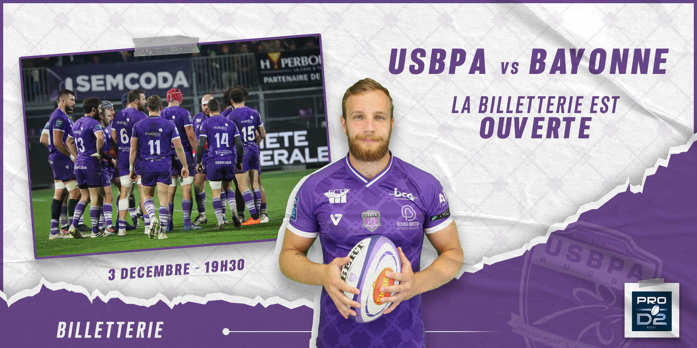 Bourg-en-Bresse reçoit Bayonne ce vendredi 3 décembre à 19h30 au stade Marcel Verchère, diffusé sur Rugby+ (ouverture des portes et des guichets à 18h00). Pour rappel, l’USBPA Rugby ne prendra plus de règlements en espèces les jours de matchs, le système Cashless ainsi que la Carte Bancaire seront les seuls moyens de paiements acceptés (il est possible de recharger en espèce une carte Cashless). Le port du masque dans l’enceinte du stade Verchère est obligatoire !