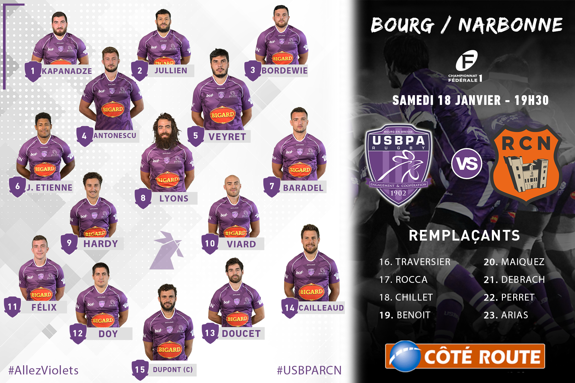 Retrouvez les joueurs convoqués par la paire Boulanger/Choveau avant le match de demain à 19h30 face au RC Narbonnais