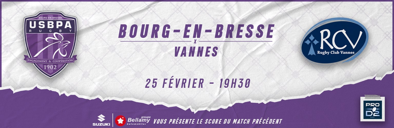Bourg-en-Bresse reçoit le RC Vannes vendredi 25 février à 19h30 au stade Marcel Verchère pour le compte de la 22ème journée de Pro D2