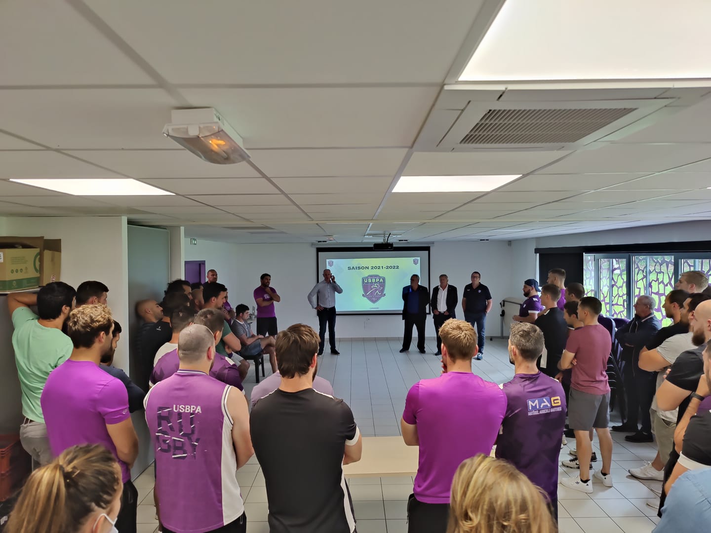 Après le traditionnel discours du Conseil d’Administration pour présenter la saison à venir, ses objectifs et le staff d’encadrement, les nouvelles recrues ont pu se présenter à leur tour à tous les salariés de l’USBPA Rugby (coachs, joueurs, administratifs).