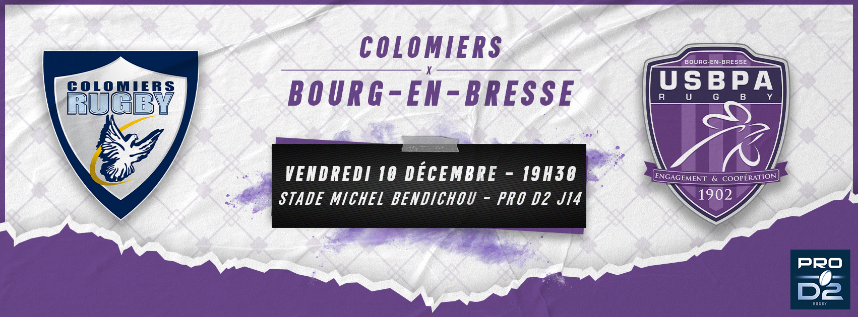 Bourg-en-Bresse se déplace à Colomiers vendredi 10 décembre à 19h30 au stade Michel Bendichou, diffusé sur Rugby+.