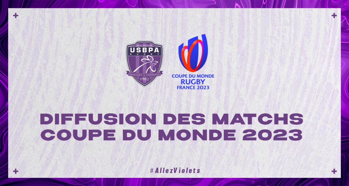 Pour l’occasion, l’USBPA Rugby vous propose une diffusion sur les écrans géants du stade Marcel Verchère à la fin des matchs de nos Violets. Alors dès à présent, organisez votre soirée totalement Rugby à Bourg dans l’antre de Verchère pour ne rien louper de la Nationale ainsi que de cette passionnante Coupe du Monde qui promet de nous faire vibrer !