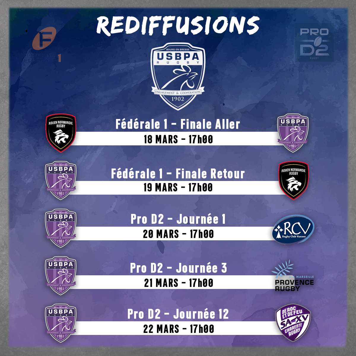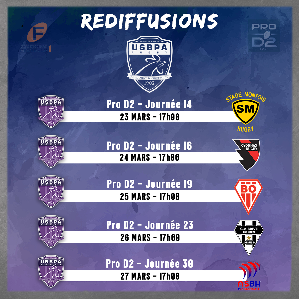 A partir de demain 17h00, l’USBPA vous propose de revisionner des matchs marquants des deux saisons précédentes ! Au programme : finale de Fédérale 1 saison 2017/2018 et belles victoires en Pro D2 ! #RestezChezVous et profitez de ces matchs en direct Live sur notre page Facebook ou sur notre site web !