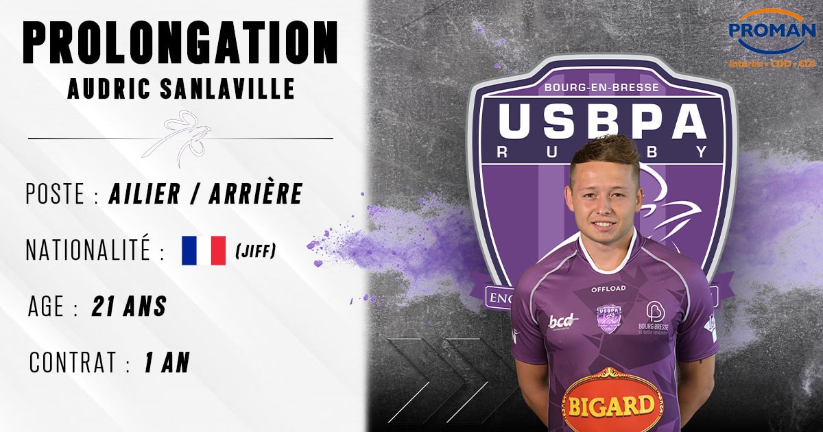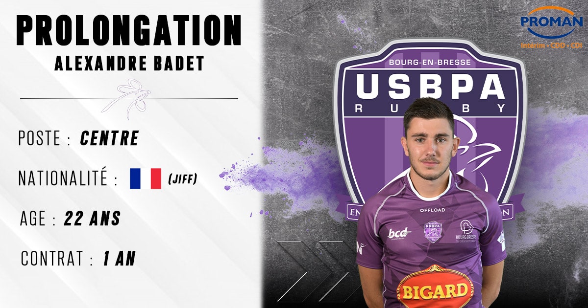L’USBPA et Proman Bourg-en-Bresse vous annoncent la prolongation de contrat d’Audric Sanlaville ainsi que d’Alexandre Badet ! Les deux jeunes bressans évoluent respectivement aux postes d’ailier et de centre. Ils seront liés au club une saison de plus !