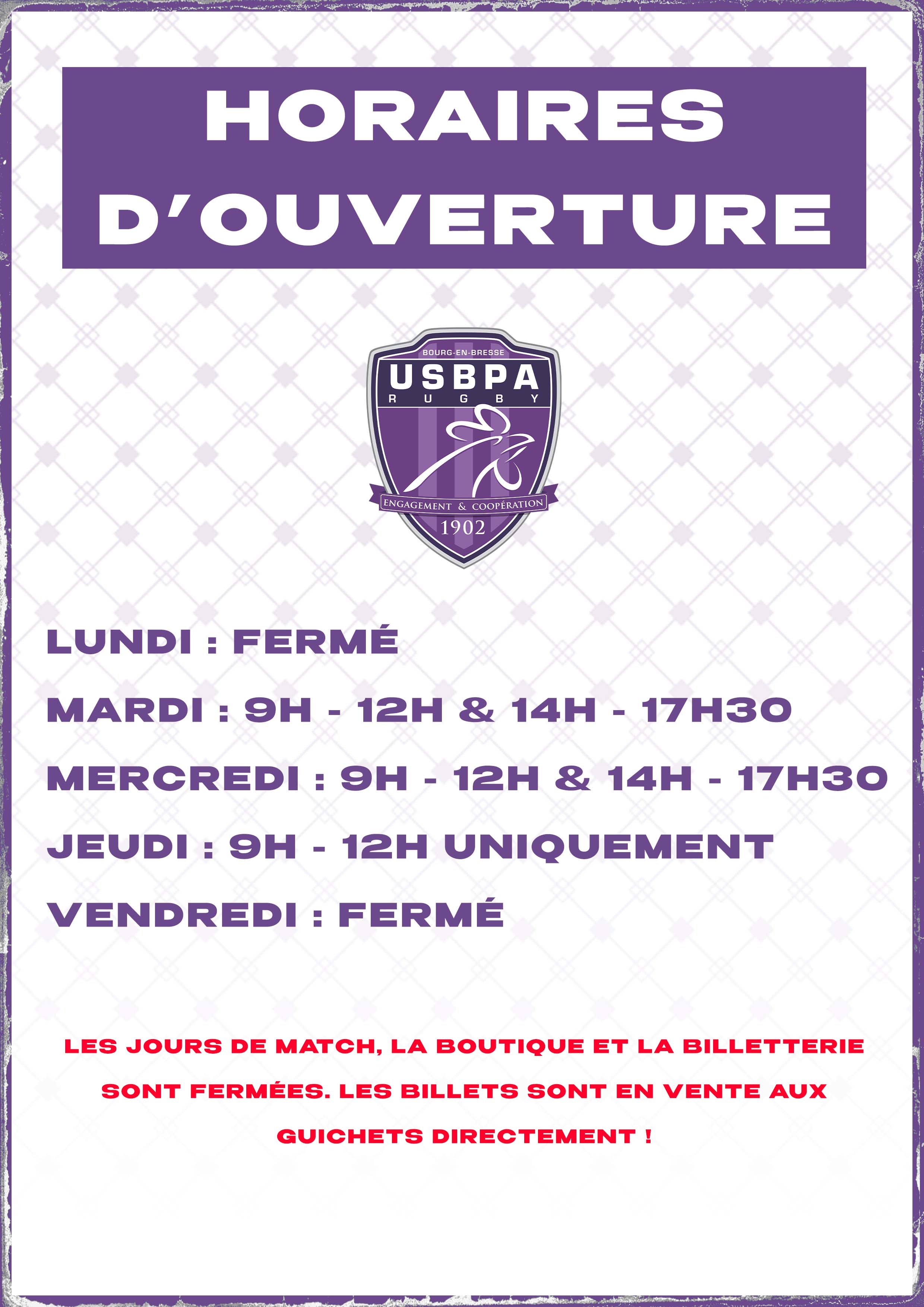 Les horaires de la boutique – billetterie du stade Verchère évoluent
