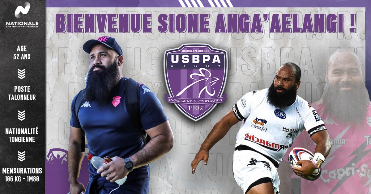 L’USBPA Rugby officialise l’arrivée du talonneur Tongien Sione Anga’Aelangi en tant que joker médical. Passé par le RC Vannes, le Biarritz Olympique et plus récemment le Stade Français Paris (joker), Sione connaît bien la France et viendra renforcer le collectif bressan pour cette fin de saison de Nationale. Né à Sydney en Australie, le joueur de 32 ans a porté à cinq reprises le maillot des Tonga et a débuté sa carrière dans le championnat Néo-Zélandais. L’ensemble du club de l’USBPA Rugby lui souhaite la bienvenue à Bourg-en-Bresse !