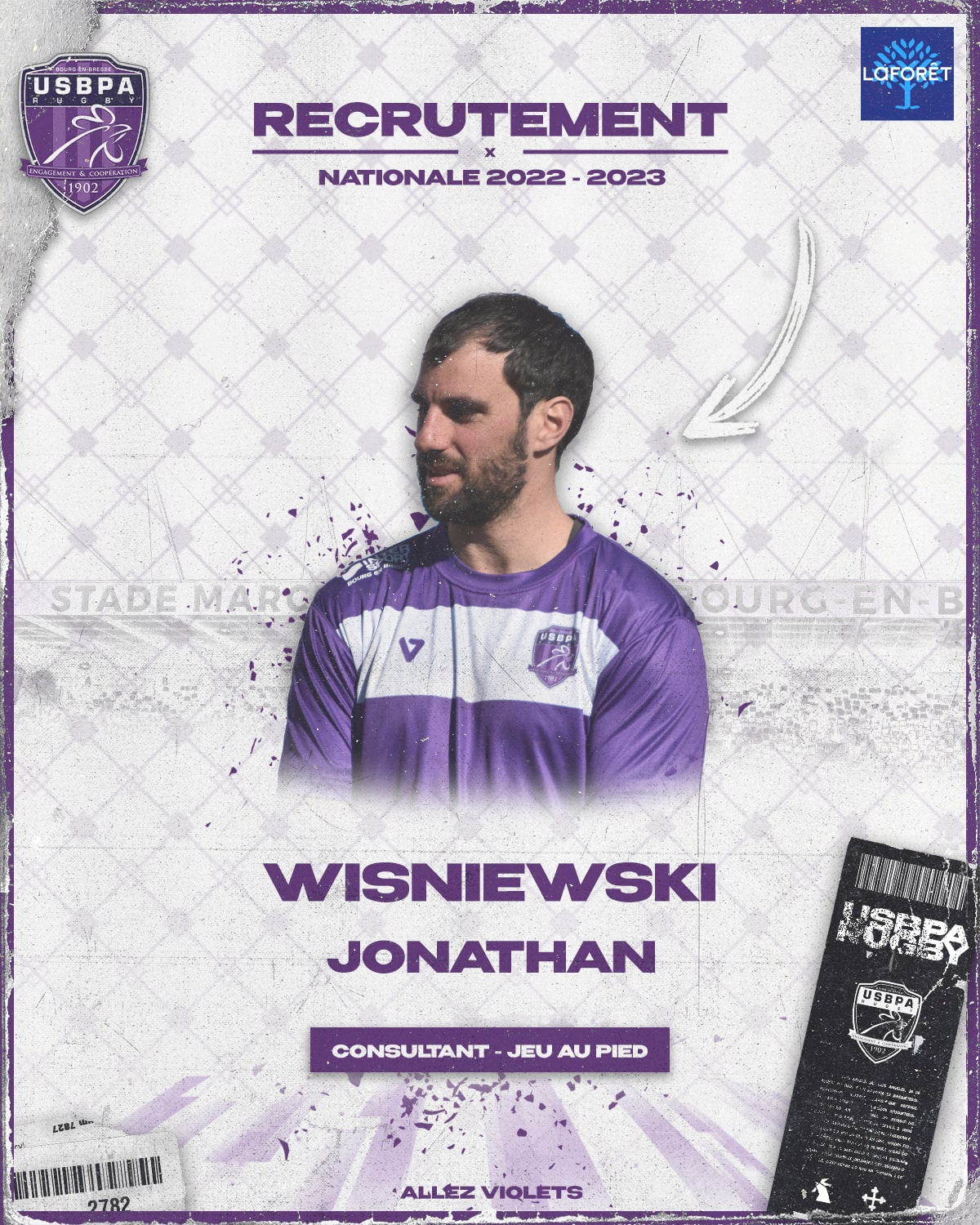 L’USBPA Rugby et son partenaire Laforêt Bourg en Bresse vous annoncent la venue de Jonathan Wisniewski au club en tant que consultant sur le Jeu au pied pour la saison 2022 – 2023. Une fois par semaine, Jonathan sera présent à Bourg pour prendre en charge les buteurs et la stratégie de Jeu au pied de l’USBPA Rugby ! Passé par Lyon, Toulon, Grenoble, le Racing, Colomiers, Castres, le Pays d’Aix RC et Toulouse, l’ancien demi d’ouverture (3000 points en carrière) pour apporter toute son expérience du haut niveau à nos joueurs !
