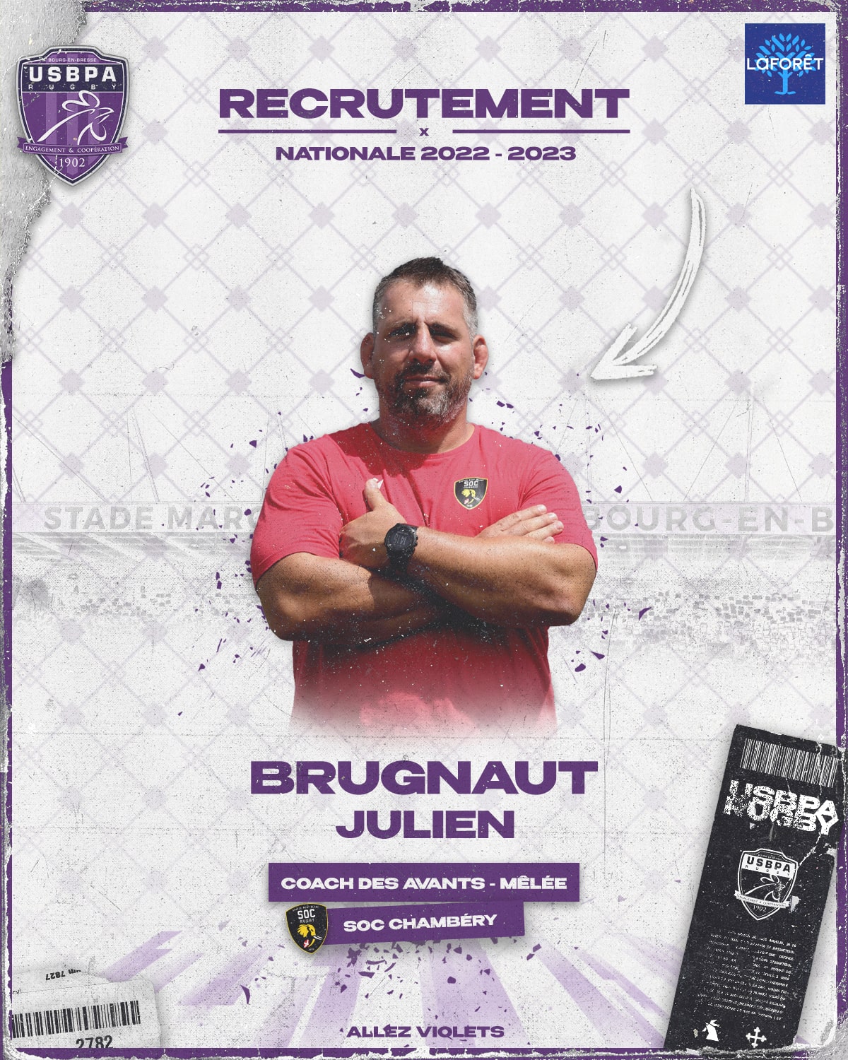 L’USBPA Rugby et son partenaire Laforêt Bourg en Bresse vous annoncent la signature de Julien Brugnaut en tant que Coach des Avants (mêlée) pour deux saisons (+1 en option) !