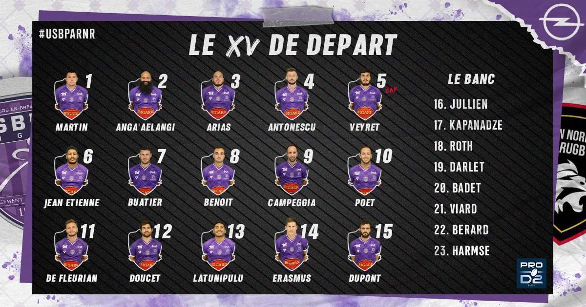 Opel Mondial Autos, concession à Péronnas, vous présente la composition d’équipe de l’USBPA Rugby pour la réception du Rouen Normandie Rugby demain à 19h30 !