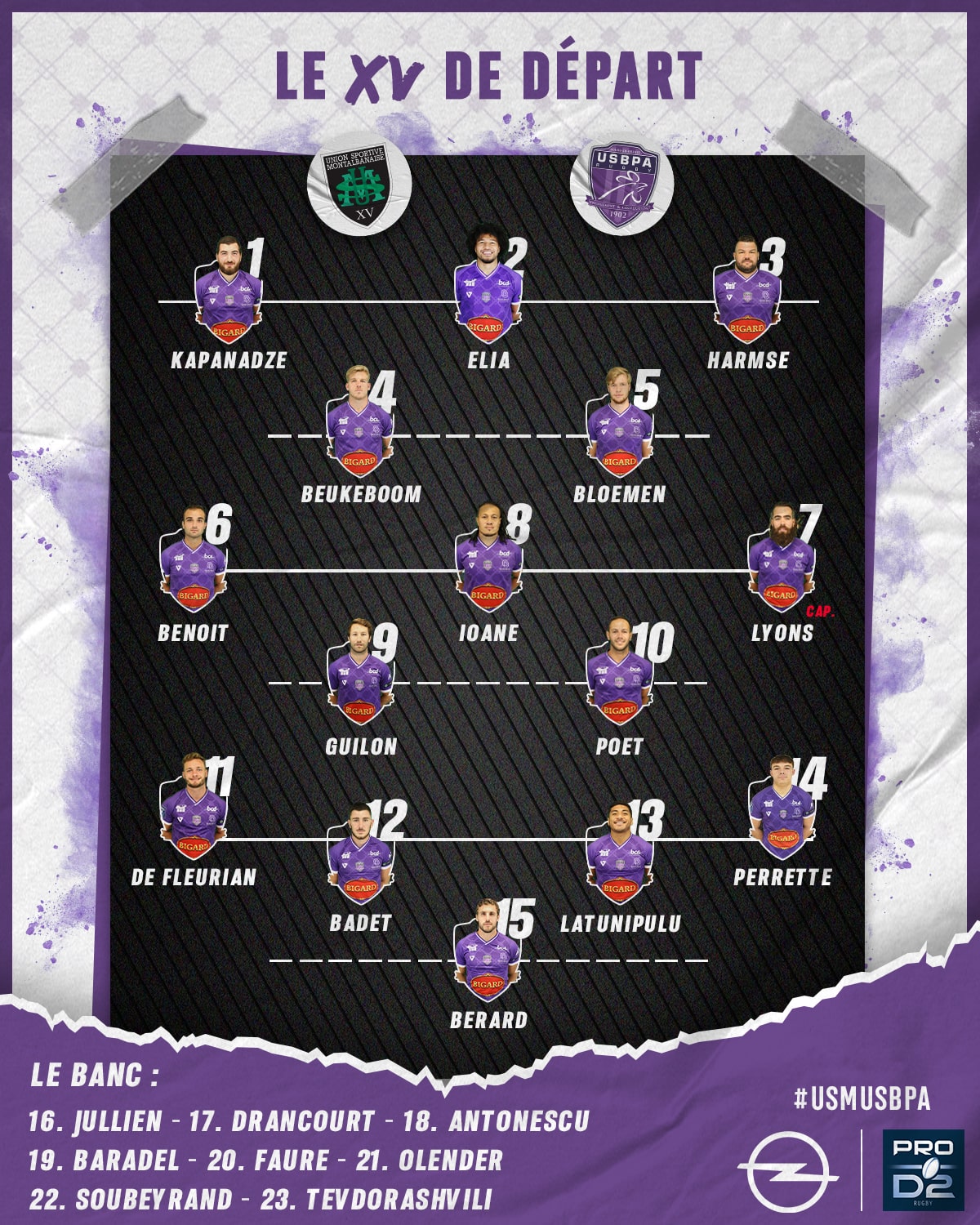 Opel Mondial Autos, concession à Péronnas, vous présente la composition d’équipe de l’USBPA Rugby pour le déplacement sur la pelouse de Montauban demain à 19h30 (Stade Sapiac, diffusé sur Rugby +).