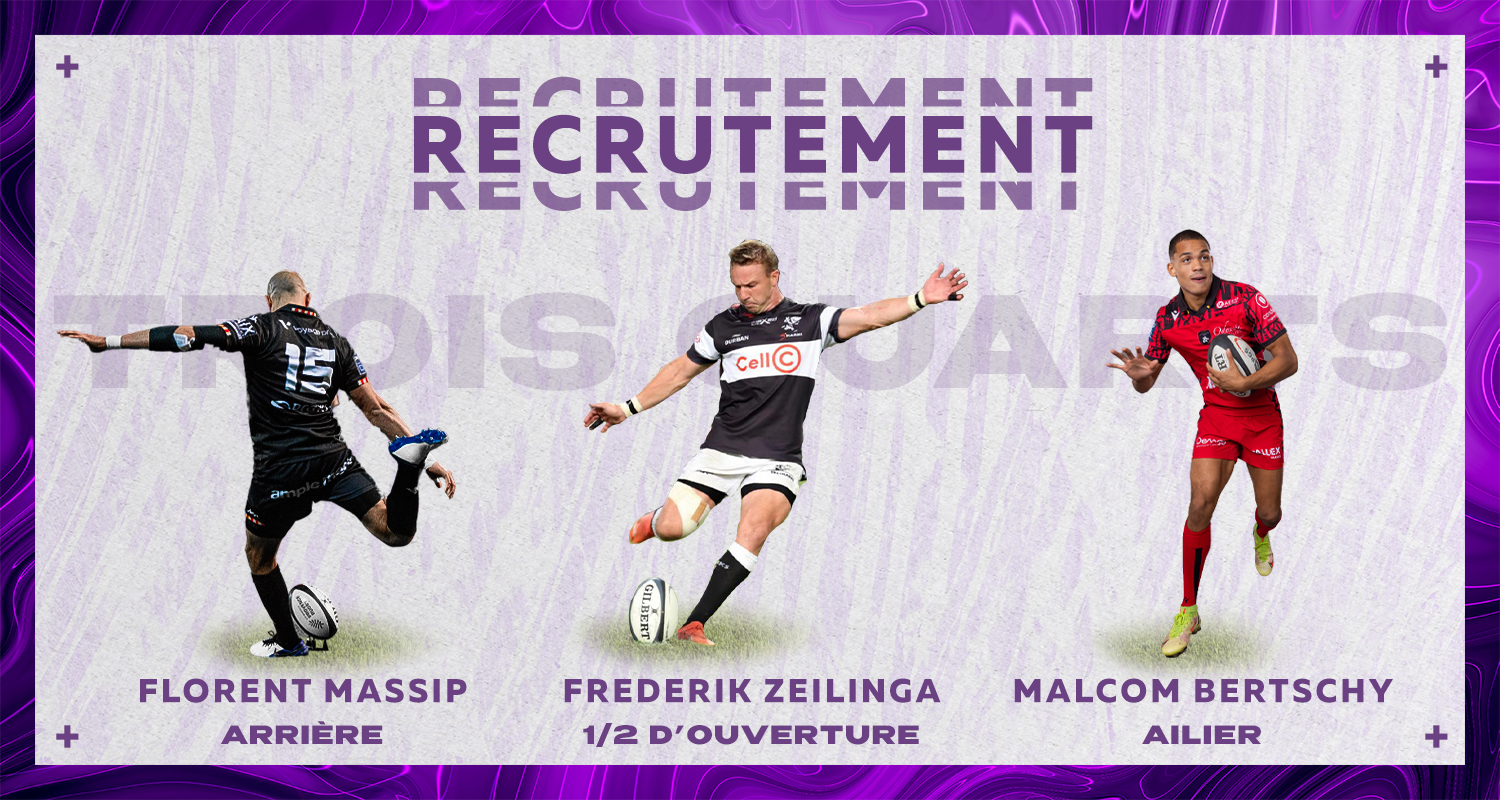 - Florent Massip – 29 ans – Français (Ile de la Réunion) : arrive de Provence Rugby (Pro D2) au poste d’arrière, s’engage 2 saisons (+1 en option)
