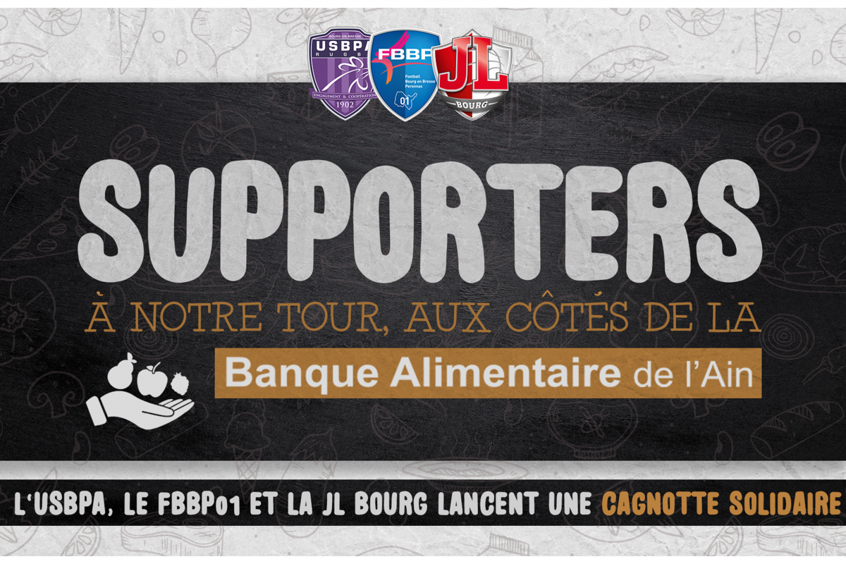 Conscients de la crise sanitaire actuelle, des besoins émergents sur le territoire et de l’investissement des associations d’aide à la personne, les trois clubs professionnels de Bourg-en-Bresse/Péronnas lancent, ensemble, une cagnotte solidaire en faveur de la Banque Alimentaire de l’Ain pour apporter leur soutien dans la lutte contre l’épidémie du COVID-19.