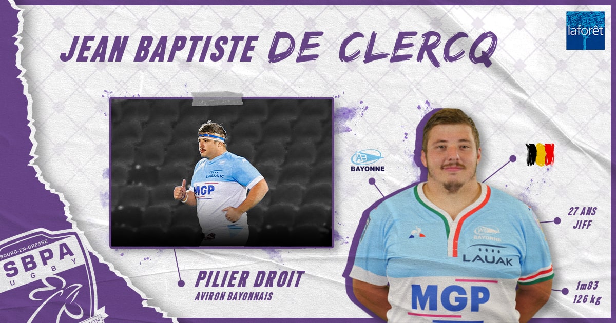 Laforet Bourg-en-Bresse vous informe de l’arrivée à l’USBPA Rugby d’un « Joueur Supplémentaire » jusqu’à la fin de saison. Jean Baptiste De Clercq, pilier droit et international Belge de 27 ans arrive en provenance de l’Aviron Bayonnais. Passé par le Stade Français, Oloron, puis Bayonne, il a joué 16 rencontres de Top14, 4 de Challenge Cup, 3 de Pro D2 et 19 de Fédérale 1 ! Nous lui souhaitons la bienvenue à Bourg-en-Bresse !