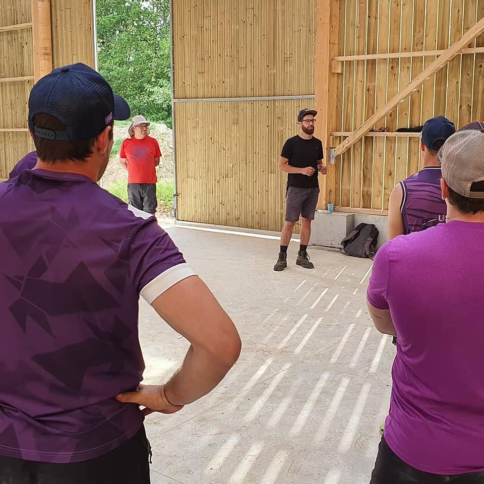 Les joueurs ont passé une riche et dure journée de labeur, dans les champs de houblon, afin de fixer les jeunes pousses sur les tuteurs en corde. La crise du Covid-19 a rendu difficile le recours aux travailleurs saisonniers, qui sont nécessaires pour cette tâche de grande ampleur. C’est pour cela que des joueurs se sont portés volontaires, afin d’aider les deux associés de cette exploitation.