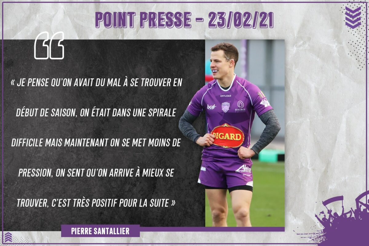 Cependant, les Violets reviennent de la Savoie avec des blessés, le coach fait le point : « Au niveau de l’infirmerie, on a eu pas mal de blessures en deux matchs, Koen Bloemen (fracture au niveau de la face, près de l’œil), Adrien Buatier (acromion) et Christiaan Erasmus (commotion) ont été touchés ».