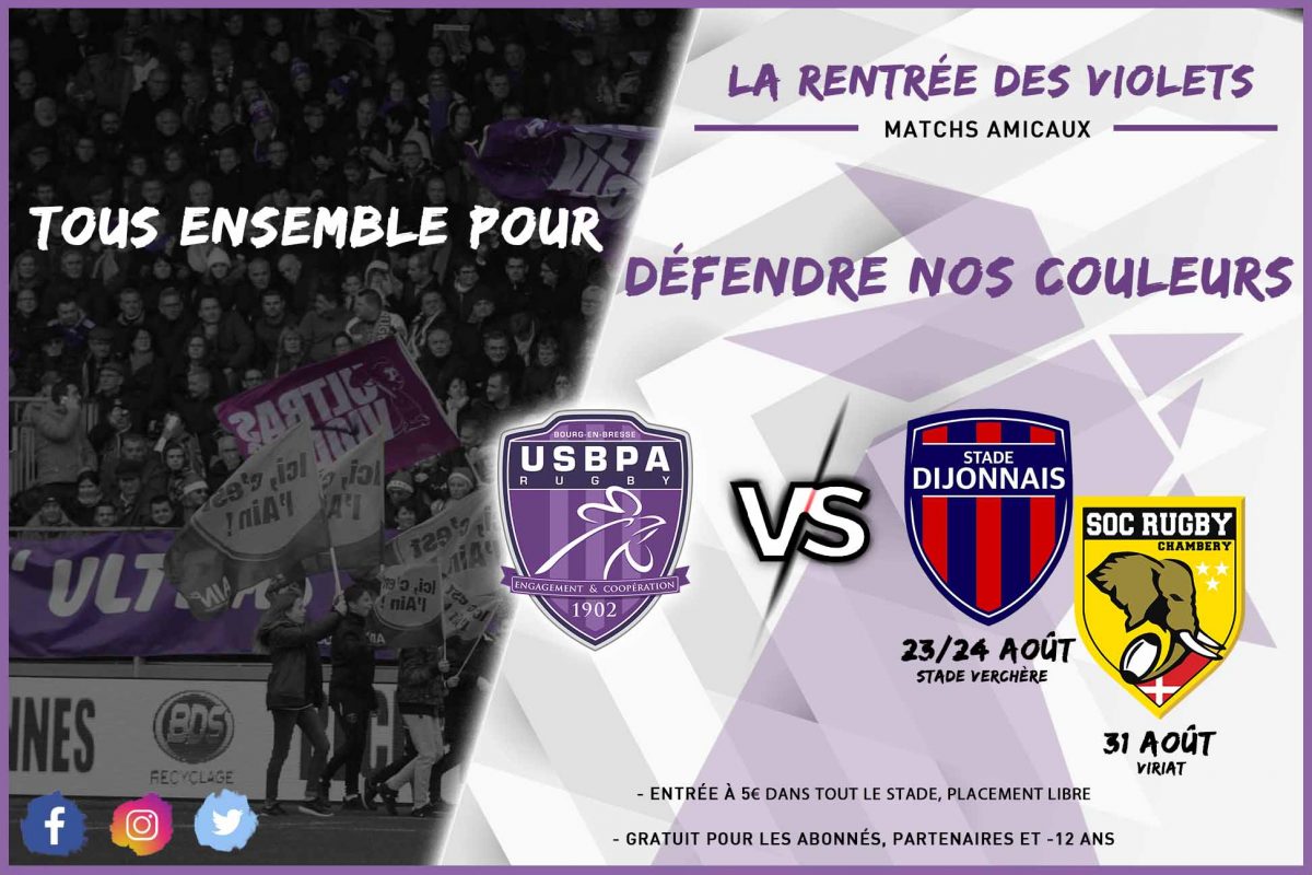 - Week-end du 31 août / 1er septembre : contre Chambéry à la fête de l’Andouillette du RC Viriat