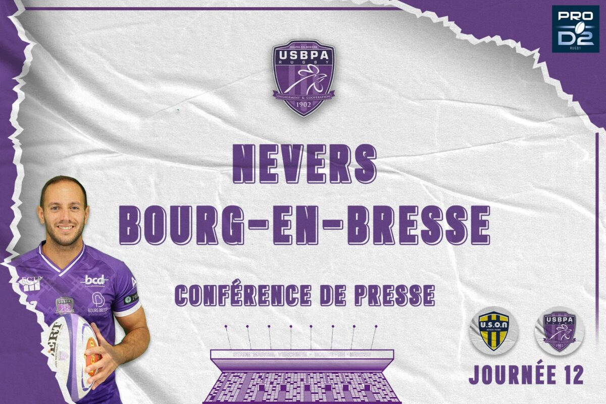 Bourg-en-Bresse se déplace à Nevers ce vendredi 26 novembre à 19h30 au stade du Pré Fleuri, diffusé sur Rugby+.