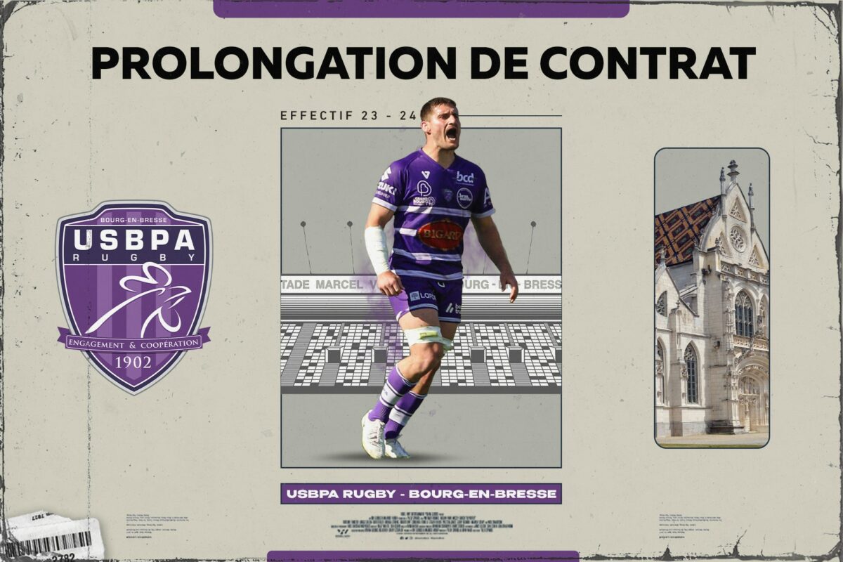 L’USBPA Rugby vous annonce la prolongation de contrat de Nicolas Tachat pour deux saisons au poste de troisième ligne ! Il était revenu à Bourg en tant que joueur supplémentaire en cours de saison, il sera Bressans pour les deux prochaines.