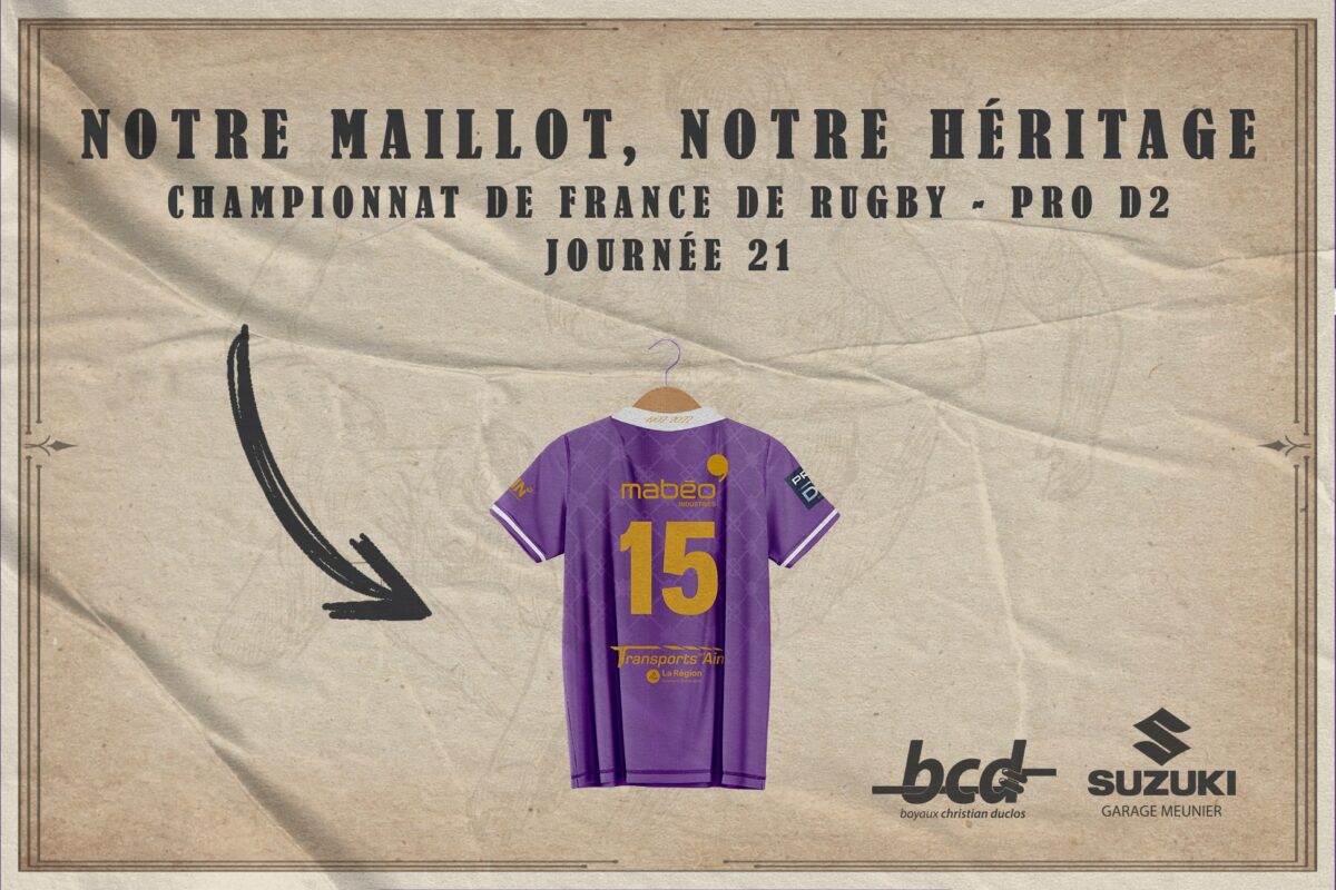 A l’occasion du match des 120 ans, vos joueurs porteront un maillot unique pour partir au combat face à Agen ! Le design reprend les codes du maillot des années d’après guerre avec un scapulaire blanc, du Violet et une imitation de cordage à lacets. La référence au Monastère de Brou est toujours présente, les armoiries de la Ville de Bourg-en-Bresse trônent à l’avant et au centre est inséré le logo originel de l’USB, le logo créé en 1902 ! Les 23 maillots portés par les joueurs de la rencontre seront mis en vente aux enchères dès le coup d’envoi de la rencontre ! Il n’y aura pas de réédition de ce maillot, le rendant encore plus unique et exceptionnel.