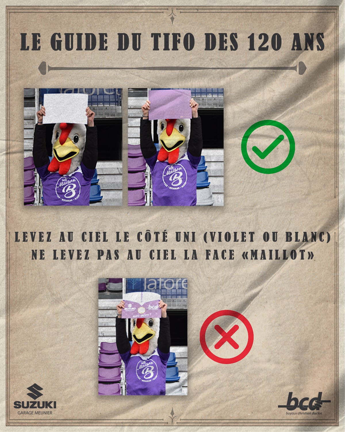 Nouvelle surprise pour le match des 120 ans face à Agen ! Toute la tribune CGT sera mobilisée pour réaliser un Tifo à l’entrée des joueurs sur la pelouse à 19h30 ! Découvrez le guide d’utilisation :