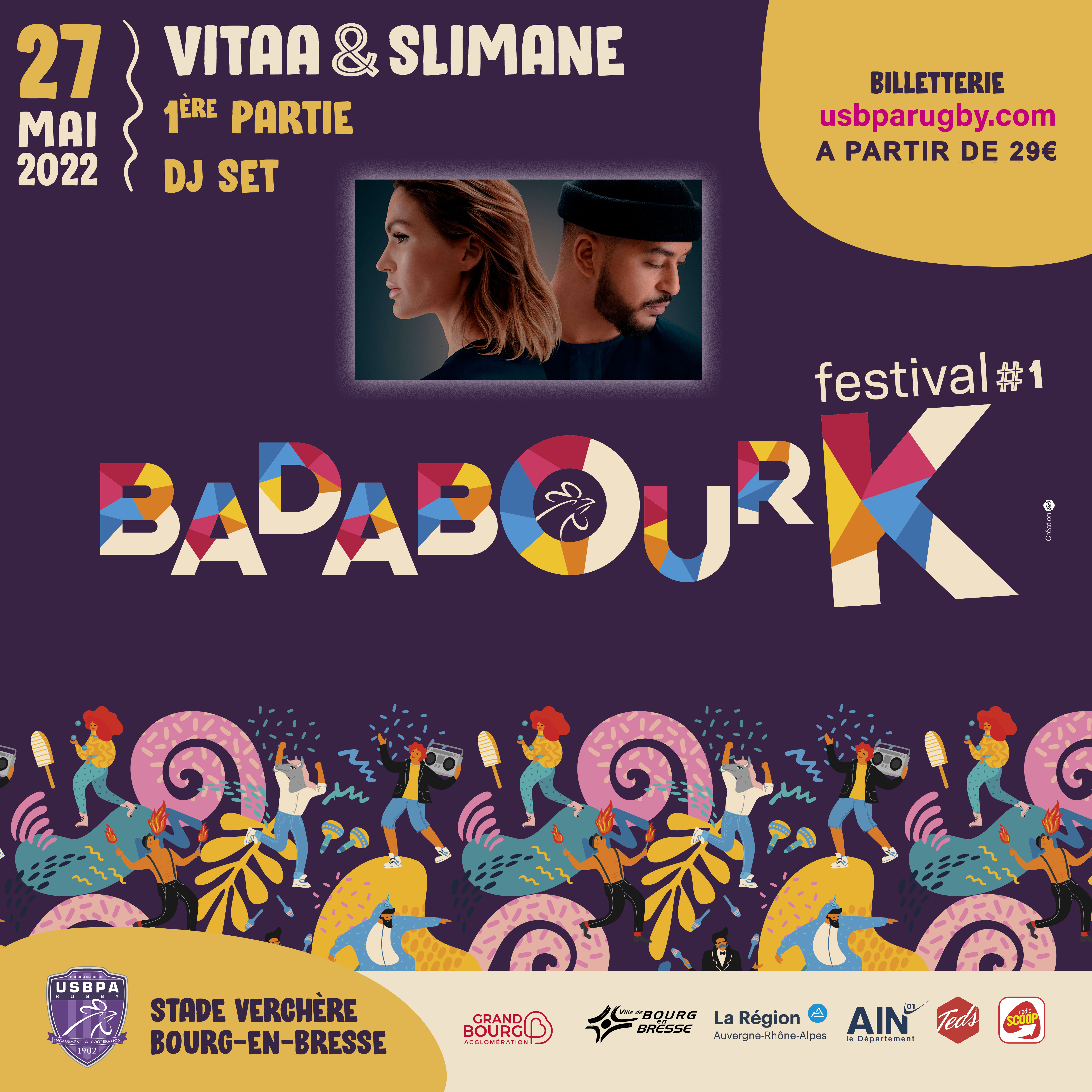 Pas encore trouvé le cadeau idéal pour Noël ? Offrez des places de concert pour passer un bon moment en famille, entre amis ou entre collègues le 27 mai 2022 à Verchère : Vitaa & Slimane seront sur la scène de notre stade à l’occasion du Badabourk Festival !