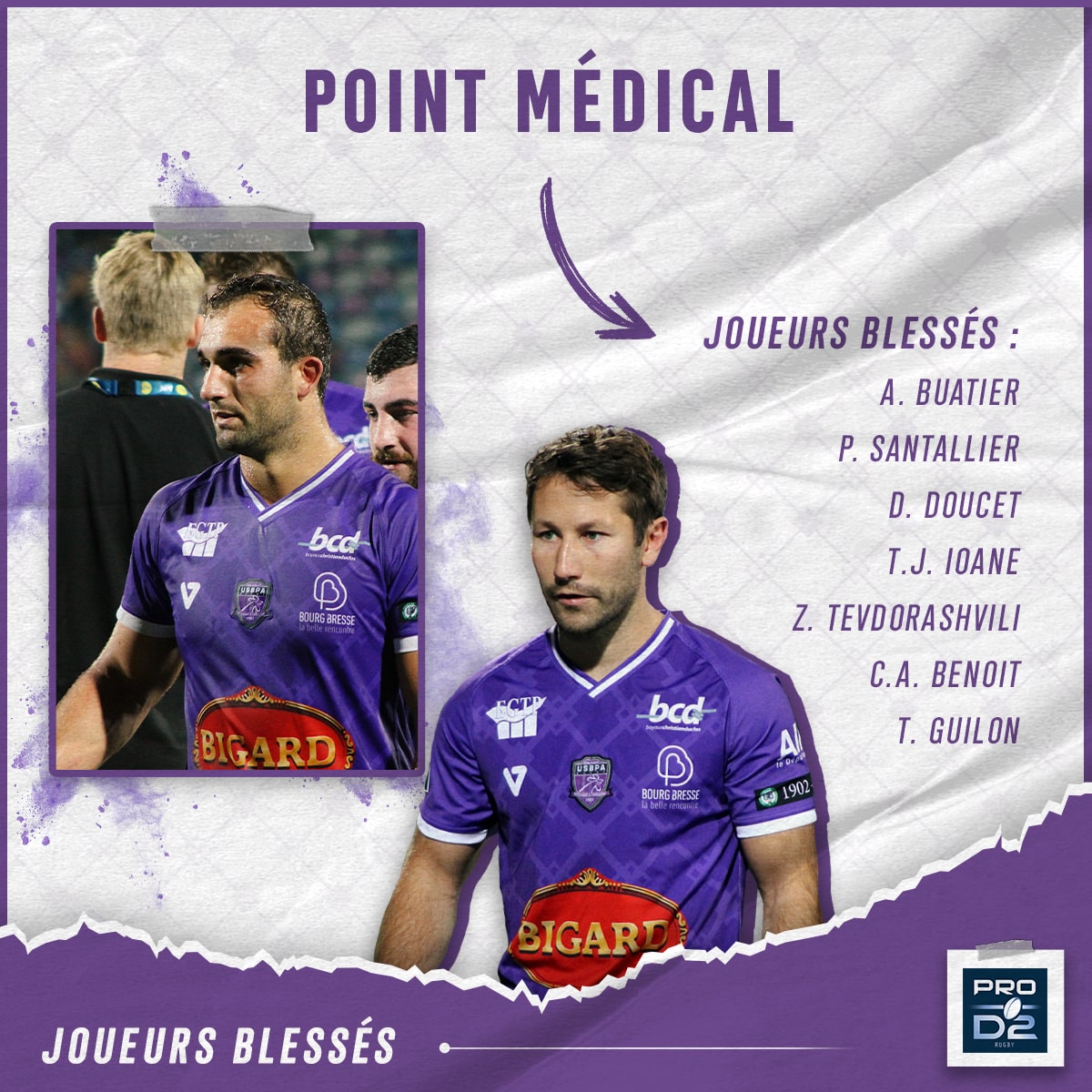 Vous avez été nombreux à nous envoyer des messages concernant les joueurs qui se sont blessés face à Montauban, et nous vous remercions pour les mots de soutien envoyés à vos Bressans !