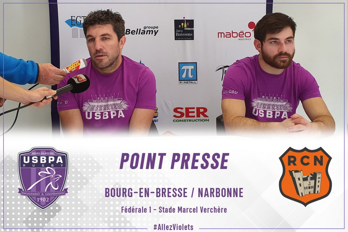 Le technicien bressan annonce un adversaire qui est : « Puissant, propre sur la conquête, qui met beaucoup d’intensité dans son jeu, c’est vraiment le très haut niveau de la Fédérale 1. Ils vont arriver revanchards suite au résultat du match aller et celui de leur dernier match. Ils vont vraiment mettre beaucoup d’intensité. A nous de s’y préparer. » Par rapport au match aller, Narbonne a progressé : « C’est une équipe qui sait être moins conventionnelle, qui sait désormais jouer des coups à l’instant. Ils ont eu de beaux résultats, qui leur ont donné de la confiance. »