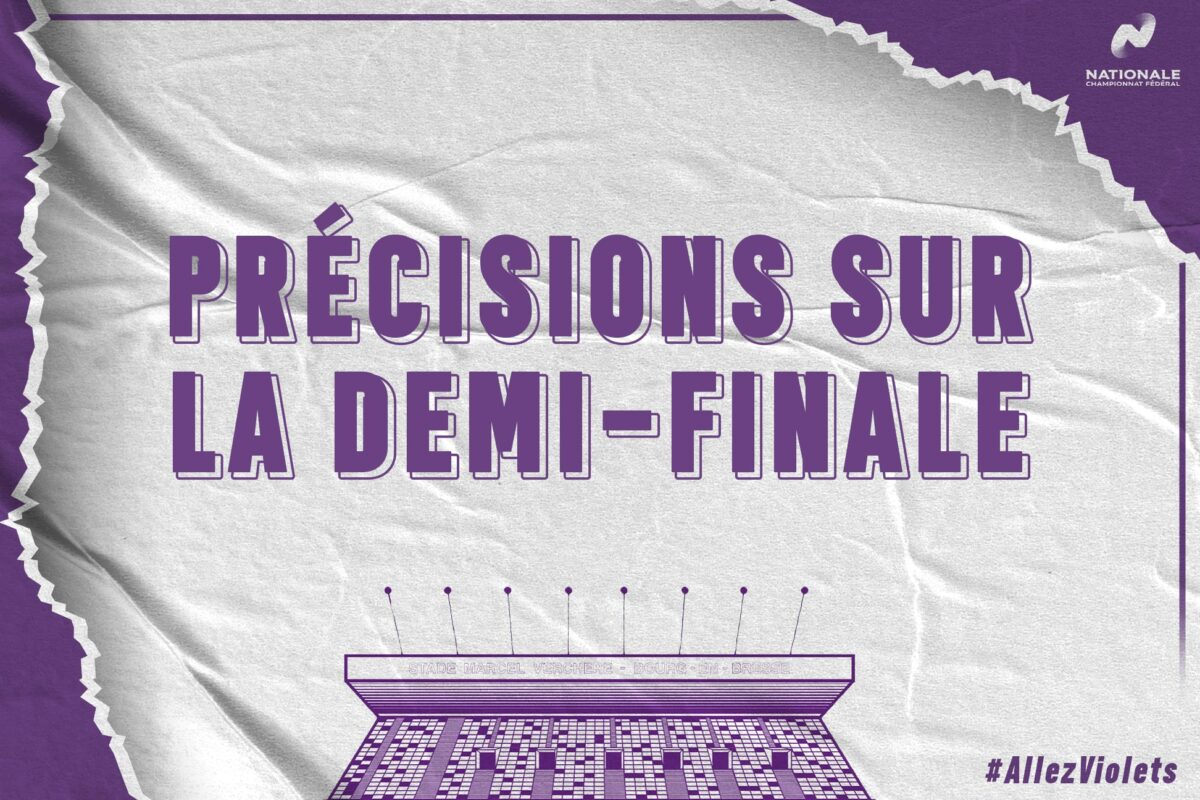 Nous avons la chance de disputer la demi-finale d’accession au Stade Marcel Verchère le 30 mai prochain. L’adversaire et l’horaire restent encore à confirmer. La capacité d’accueil du stade sera donc limitée à 1000 personnes en raison de la pandémie qui nous frappe tous depuis plus de 14 mois désormais.
