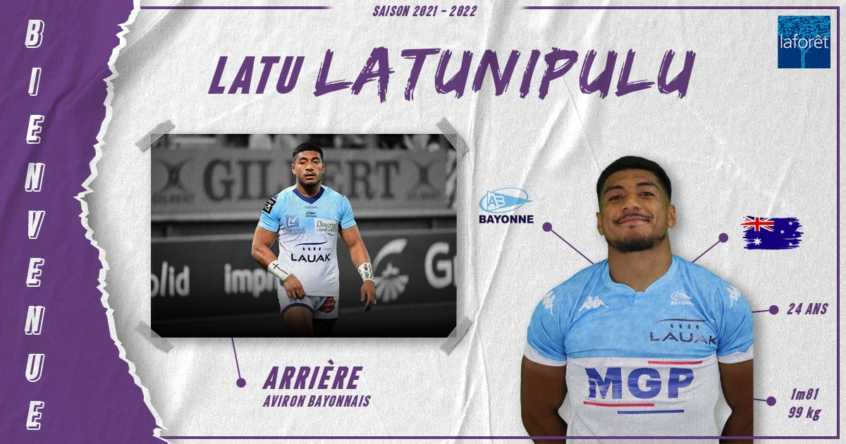 Notre partenaire LaforĂȘt Bourg-en-Bresse vous annonce la signature de Latu Latunipulu au poste d’arriĂšre en provenance de l’Aviron Bayonnais pour une saison ! PrĂȘtĂ© la saison passĂ©e au VRDR en tant que Joker MĂ©dical, il rejoint l’aventure Violette aprĂšs avoir passĂ© deux annĂ©es du cĂŽtĂ© de Bayonne (22 matchs jouĂ©s dont 6 en Top14, 2 en Challenge Cup et 14 en Pro D2). Nous lui souhaitons la bienvenue en Bresse !