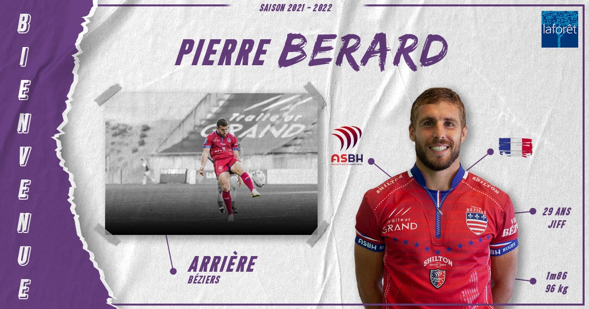 Notre partenaire Laforet Bourg-en-Bresse vous annonce la signature de Pierre Bérard en provenance de l’AS Béziers Hérault pour deux saisons (+ une en option). Joueur d’une grande expérience du haut niveau avec pas moins de 89 matchs de Top 14, 47 en Pro D2 et 21 de Coupe d’Europe, Pierre a évolué successivement sous les couleurs de Montpellier, La Rochelle (prêt), Castres et Béziers. Nous lui souhaitons la bienvenue à Bourg-en-Bresse !