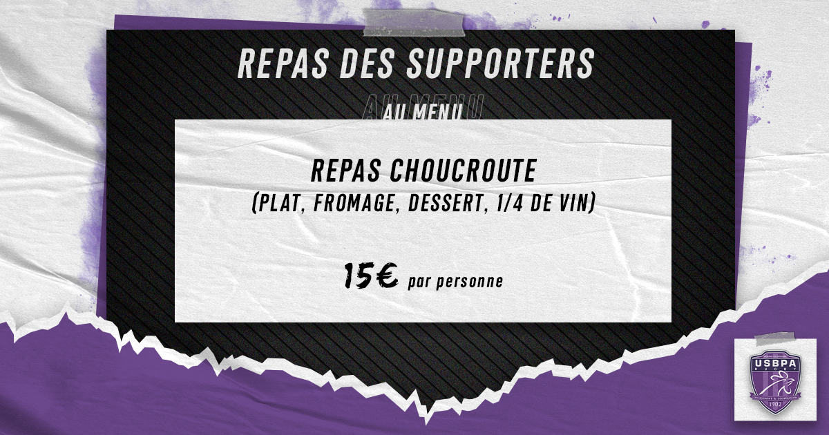 Jeudi 25 novembre, le club organise un repas des supporters à la Bodega au stade Marcel Verchère ! Pour réserver votre repas, contactez le 06 86 93 98 49 avant le mardi 23 novembre. Le pass sanitaire est obligatoire.