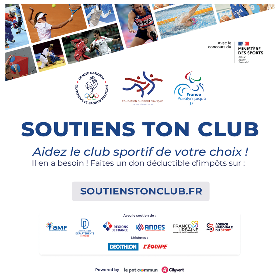 Amputée de nombreuses ressources suite à l’épisode Covid-19 (tournoi Pomathios …) l’Association s’est inscrite au sein du dispositif « Soutiens Ton Club », porté par le Ministère des Sports.