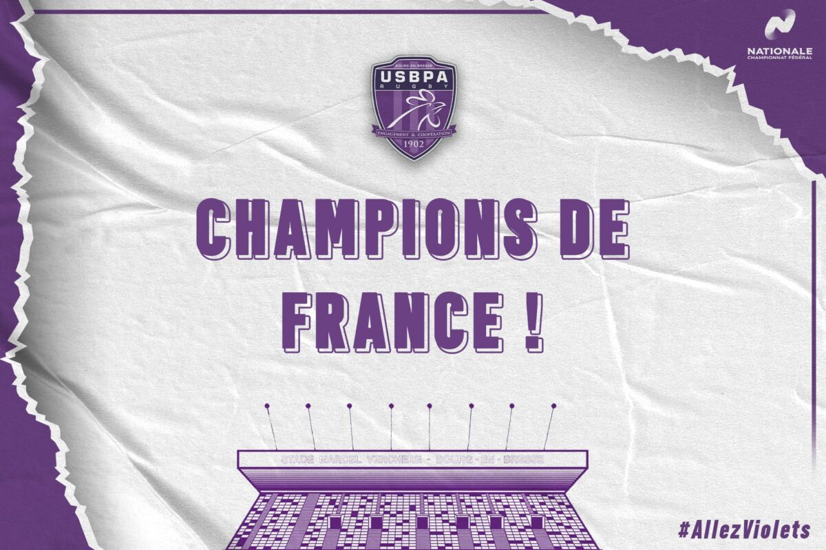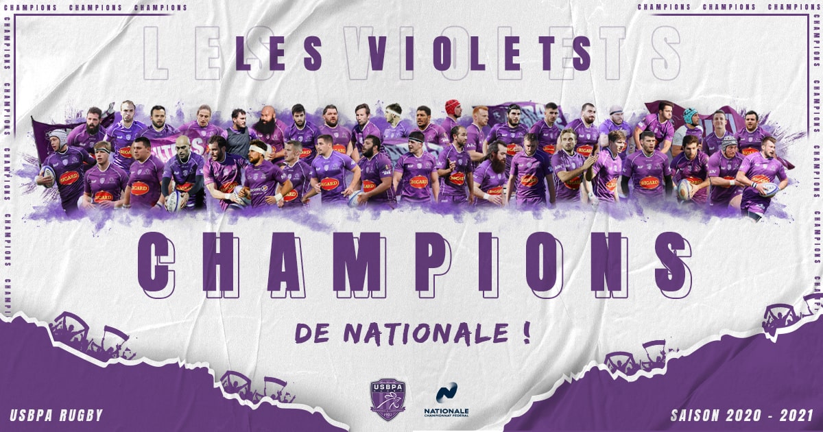 Ils l’ont fait ! Les Violets remportent la finale de Nationale Rugby face au Racing Club Narbonnais et deviennent Champions de France de Nationale pour cette toute première édition de ce championnat ! L’USBPA Rugby clôture sa saison de la plus belle des manières et décroche un titre qui vient récompenser une année de dur labeur, de persévérance et d’un énorme travail collectif !
