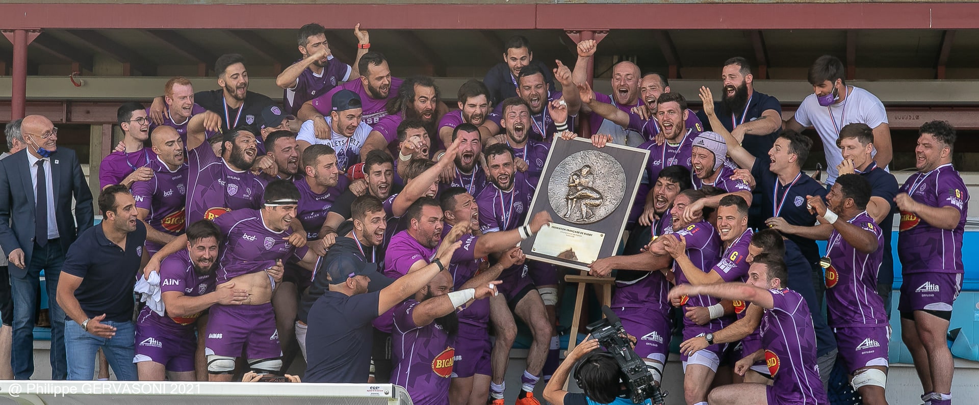 Nous tenons sincèrement à remercier toutes les personnes qui, depuis deux ans, nous soutiennent malgré cette pandémie, que vous soyez partenaires, actionnaires, abonnés ou supporters ! Aujourd’hui, vous pouvez être fiers de vous, cette victoire et ce titre vous appartiennent aussi ! 𝙀𝙉𝙎𝙀𝙈𝘽𝙇𝙀 ! Nous remercions également toutes les personnes présentes hier à Verchère pour célébrer la montée en Pro D2 et le bouclier de Champions de France !
