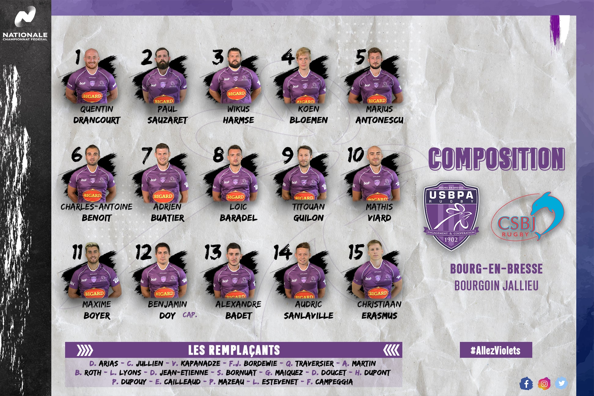Découvrez la composition de l’USBPA pour affronter le CSBJ Rugby – Officieldemain à Nantua ! Pour rappel, ce match amical se jouera au stade Pérouse et nous vous rappelons que :