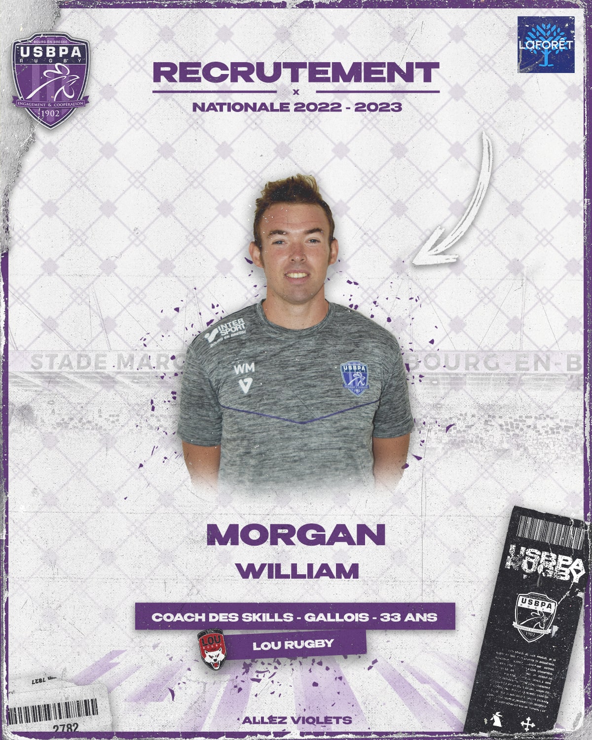 L’USBPA Rugby et son partenaire Laforêt Bourg en Bresse vous annoncent la venue de William Morgan au club en tant qu‘entraineur de la technique individuelle (coach des « skills ») pour une durée de 3 ans ! Le gallois de 33 ans était entraineur des skills sur différentes équipes de jeunes au LOU Rugby (Crabos notamment), nous lui souhaitons la bienvenue à Bourg !